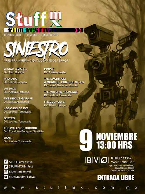 No te puedes perder nuestra función de terror este domingo 9 de noviembre en punto de las 13:00 horas con grandes exponentes del género de nuestro país y del mundo. El mejor cine independiente lo tenemos en STUFF MX.